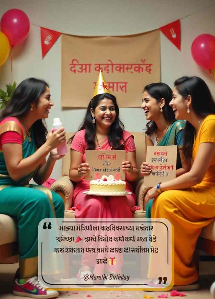 माझ्या जिवलग मैत्रीणीला वाढदिवसाच्या हार्दिक शुभेच्छा. 🎈 तुझा दिवस हास्य, हास्य आणि अद्भुत आठवणींनी भरलेला जावो.