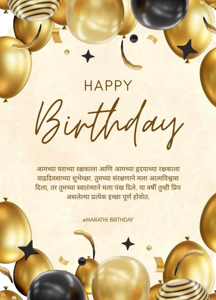 आमच्या घराच्या रक्षकाला आणि आमच्या हृदयाच्या रक्षकाला वाढदिवसाच्या शुभेच्छा. तुमच्या संरक्षणाने मला आत्मविश्वास दिला, तर तुमच्या स्वातंत्र्याने मला पंख दिले. या वर्षी तुम्ही प्रिय असलेल्या प्रत्येक इच्छा पूर्ण होवोत.